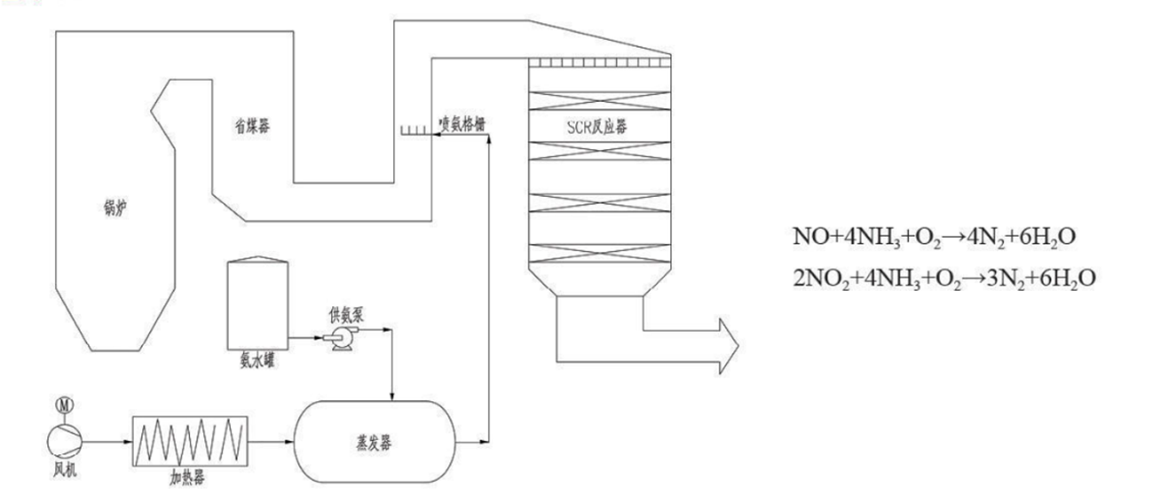 選擇性催化還原脫硝技術{SCR)是利用液氨、氨水或尿素等還原劑,在—定的溫度下通過催化劑的作用,將煙氣中的NOx(NO、N02)催化轉化為無污染的氮氣(N2)和水。SCR系統包括催化劑反應器、還原劑制備系統、氨噴射系統及相關的測試控制系統。典型的 SCR 脫硝工藝是反應器設置在鍋爐省煤器和空氣預熱器之間的高溫高塵區域。